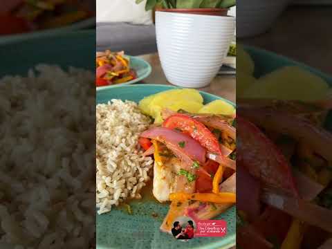 - Retiramos el pescado, y en la misma sartén incorporamos la cebolla, ají amarillo, pimiento y tomate (todos en corte juliana), sofreímos por unos minutos y retiramos.